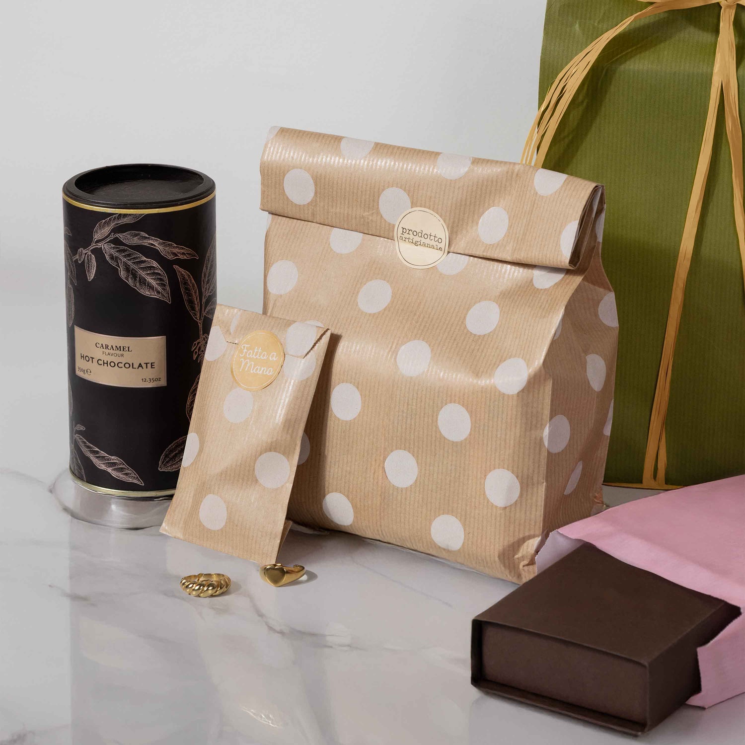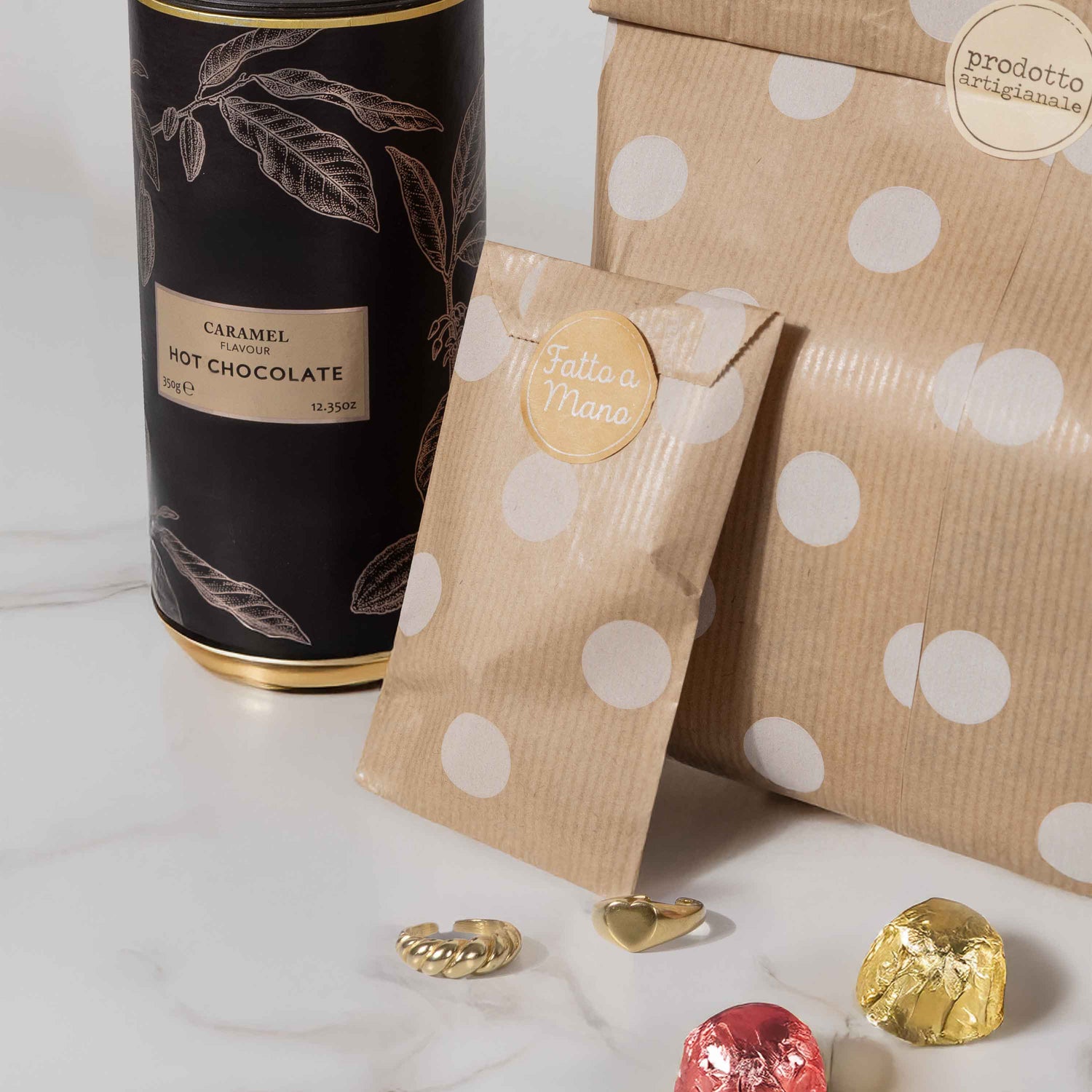 Sacchetto Carta Kraft Pois Bianchi