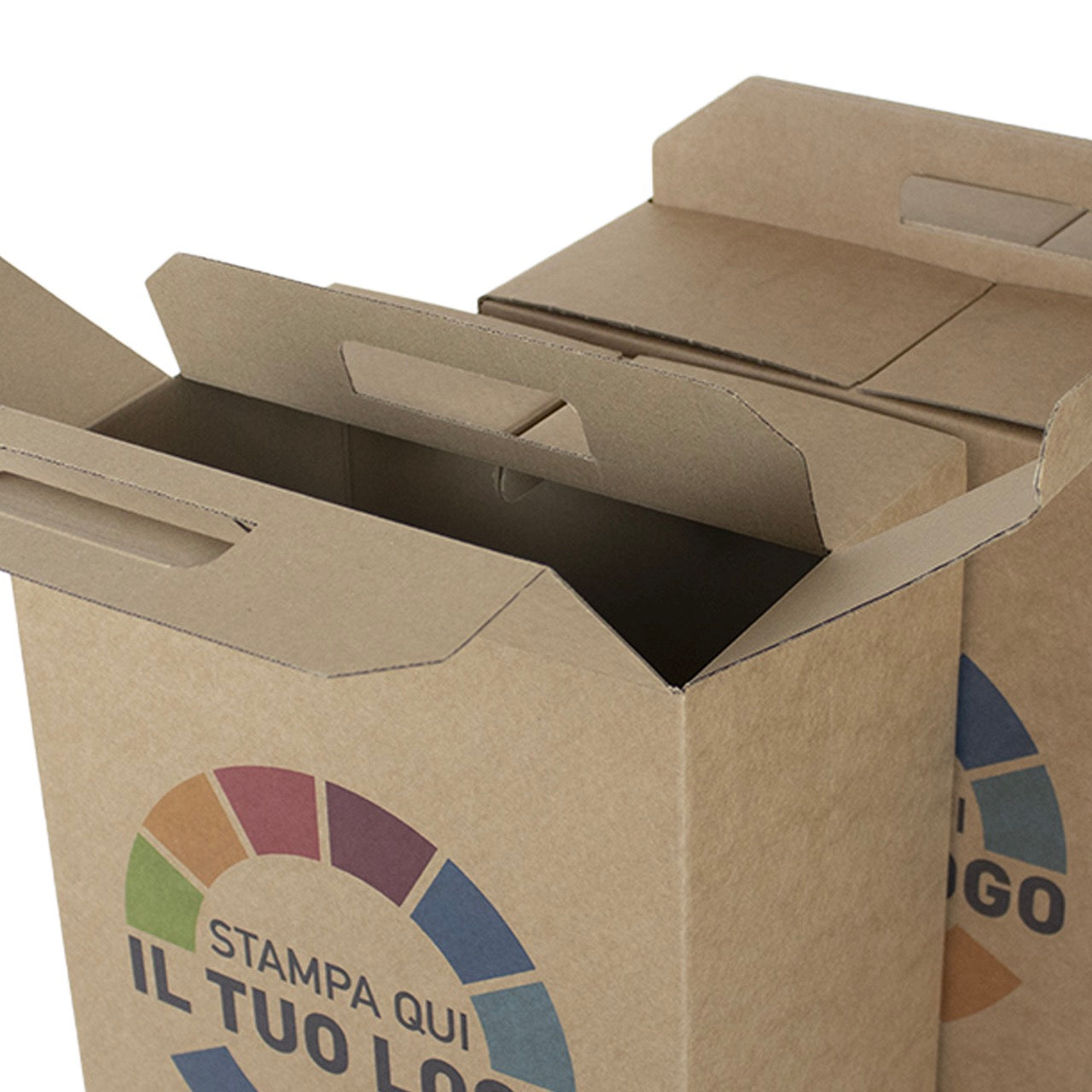 - Maniglia: fustellata, integrata nella struttura.