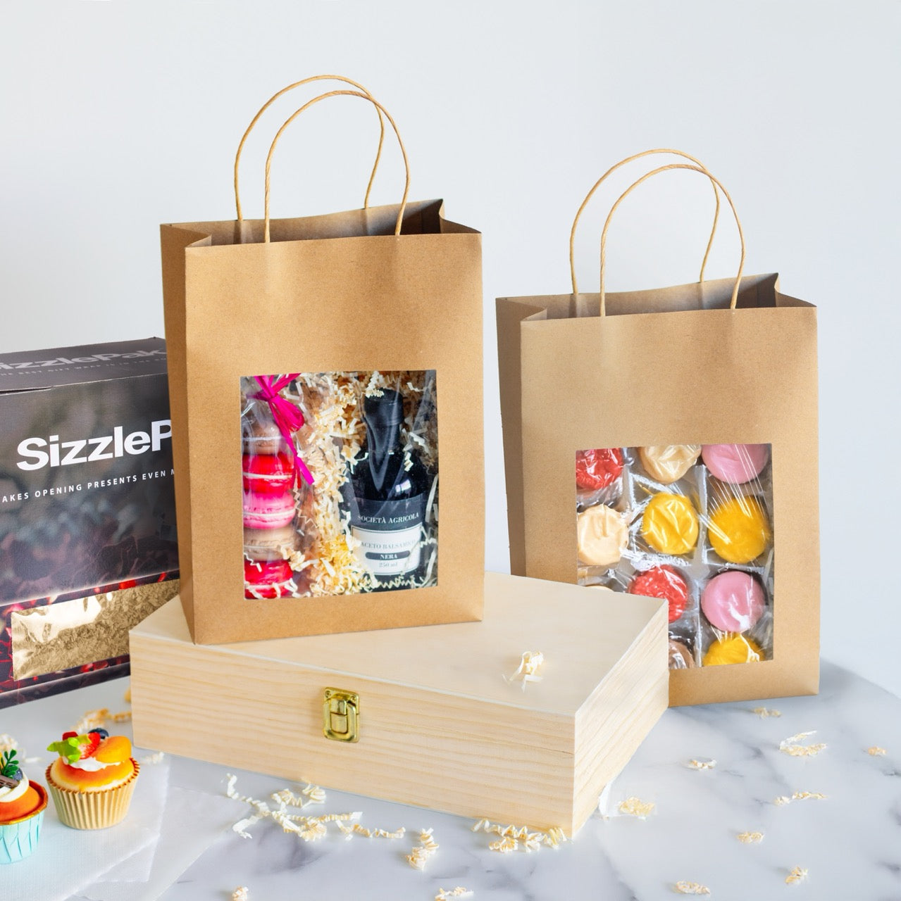 Shopper Carta Kraft cordino con finestra Avana